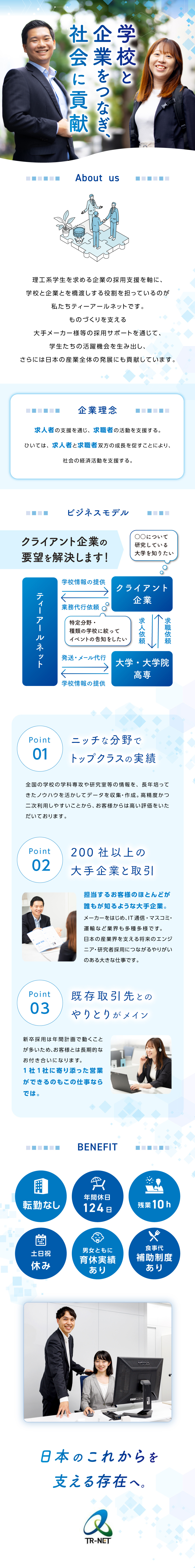 少子化によって人手不足が社会問題となるなか、理工系学生の新卒採用に悩む企業は少なくありません。その悩みに寄り添い、採用に向けて伴走支援を行っているのが、ティーアールネットです。