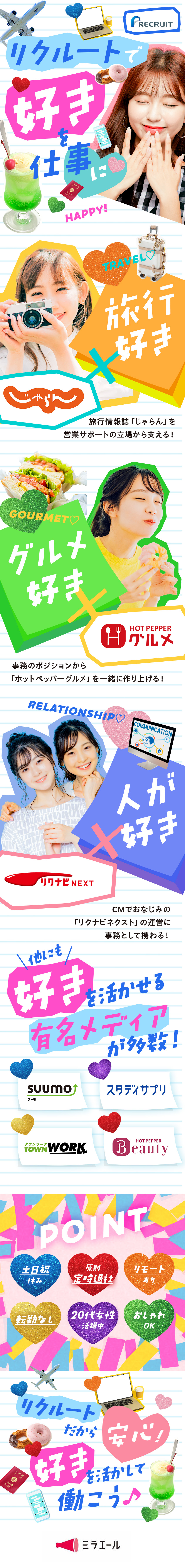 ※運営元のリクルートでの雇用ではなくスタッフサービス「ミラエール」制度での採用です。