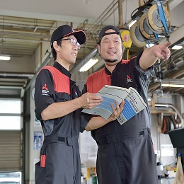 未経験から始めたスタッフも、今では三菱ブランドのプロ整備士として一人前に。