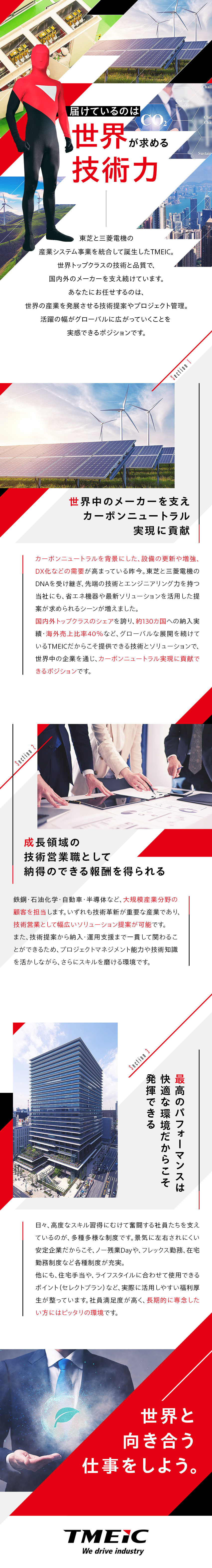 ・一般産業分野(鉄鋼・紙パ・石油化学・自動車・機械・半導体・船舶、再生可能エネルギー等)の顧客に対する、技術提案~設備納入までの一貫したプロジェクト管理・エンジニアリングをご担当頂きます。