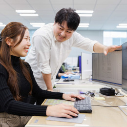 私も営業職から完全未経験で入社。積極的に質問することを心掛け、先輩たちのサポートを受けながら少しずつスキルアップすることができました。プロジェクトリーダーになることを目標に、ひきつづき技術を磨きます。