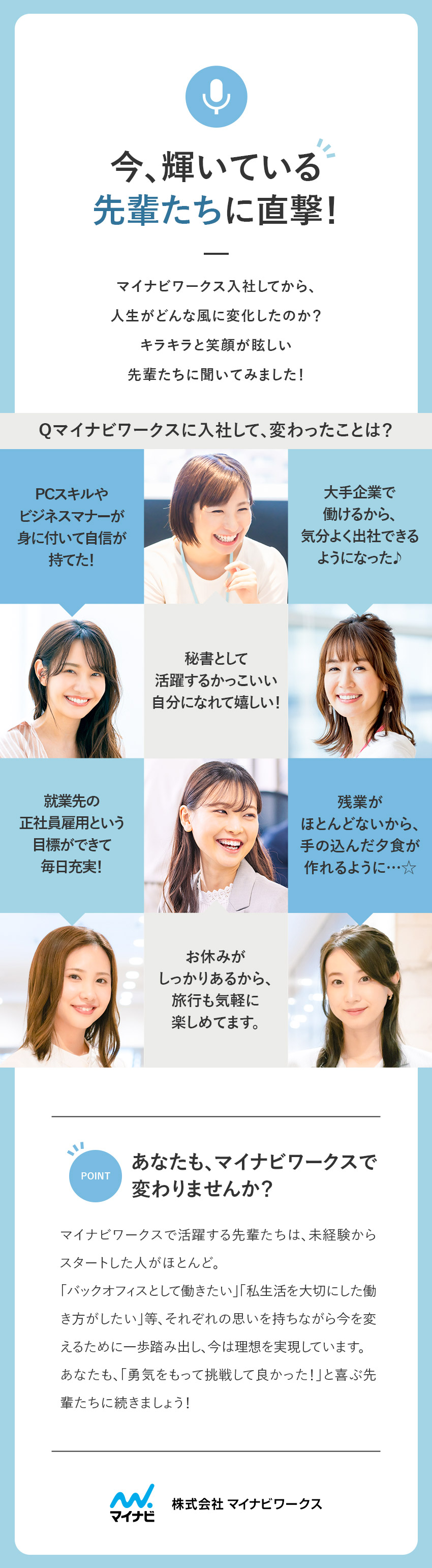 憧れの大手企業で、秘書・事務アシスタントとして活躍できる未来を掴めます。