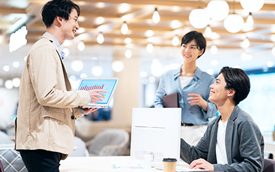 その点、同社は「ホワイト企業を目指す」ことを全面に掲げているため、安心して働ける環境が整っています。年間休日125日で、1年の1/3はお休みです。土日祝休み、残業月10時間以内などワークライフバランスを大切にする働き方が可能で、週2回在宅勤務もOKです。メリハリを付けて働けるため、休みの日はしっかりとリフレッシュしたり、空いた時間を自己学習にあてることもできます。成長に向き合える最良の環境がここにあります。