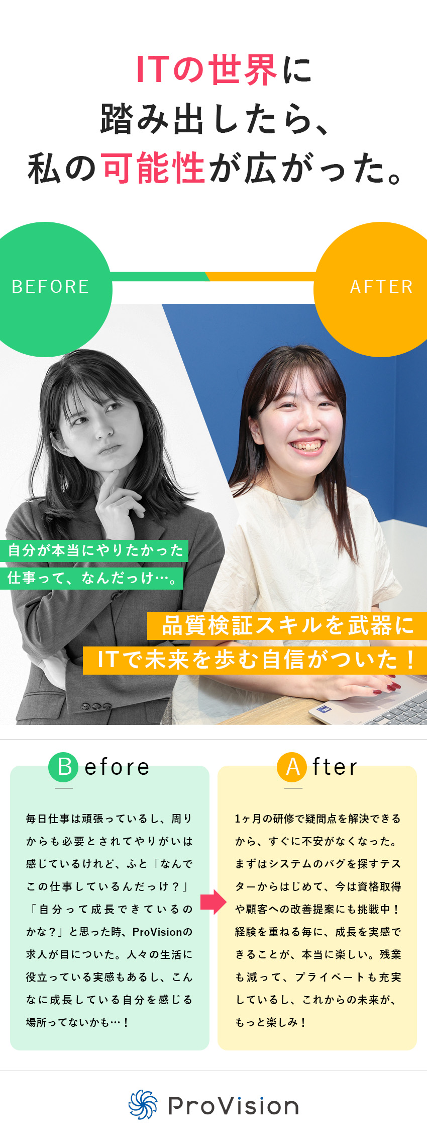 「QAってなに?」というレベルから、今では顧客への改善提案なども行えるようになりました!単に「チェックする」のではなく、開発・ユーザー双方の目線を持ち、システムを多角的に見る力がついたと思います。
