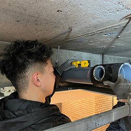 配管工事の作業中。未経験からでも先輩からしっかり教えてもらえます。