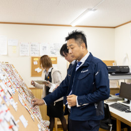 営業所として、個人がそれぞれの役割を自覚しながらスクラムを組み、一つの目標に向かって動いています。新人をしっかり育てようという意識が強く、気軽に相談できる雰囲気づくりにも努めています。