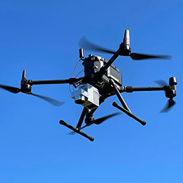 ドローンに搭載されたカメラやセンサーを使って上空から地形を撮影・計測します。