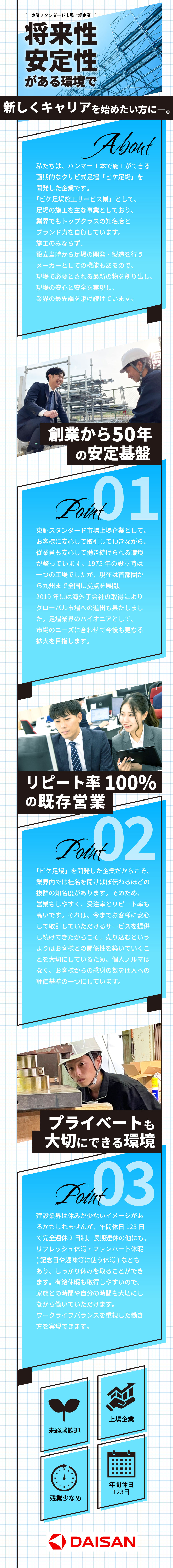 業界トップクラスのシェアを誇る足場メーカーで安定して働くことができます!