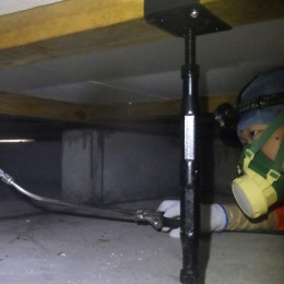 床下に潜り、シロアリや湿気、腐食などの状態を確認。