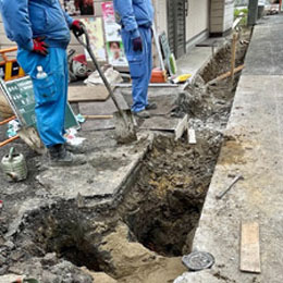 配管の運搬や道路・地面の掘削、埋め戻し作業