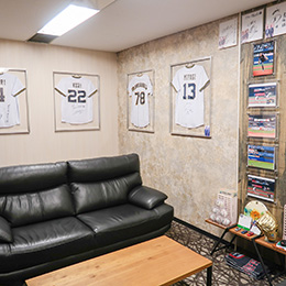 オフィスにはキリンやゾウの置物が置かれていたり、協賛するオリックスバファローズの選手サイン入りユニフォームが飾られていたりと、遊び心にあふれた空間が魅力的でした。