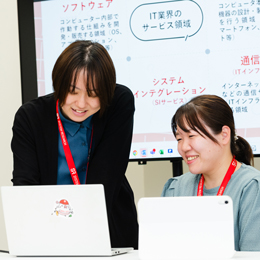 ITはアップデートが激しい業界。同社の社内でも、組織は常に成長しています。継続性を持って新しい知識を学び続けていく姿勢が欠かせません。それぞれの目指すポジションで先輩社員がしっかりサポートするので、安心してチャレンジしてくださいね!