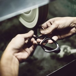 眼鏡の一大産地である福井県鯖江市の自社工場で、一本ずつ職人の手で仕上げる金子眼鏡の商品。積極的に新しい設備や技術を導入するとともに、肌に触れる部分の丸みやフレームの艶、繊細なディテールには、手仕事による熟練の技術が息づいています。