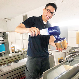 印刷オペレーターは様々な仕事があります。これはインキの補充作業になります!