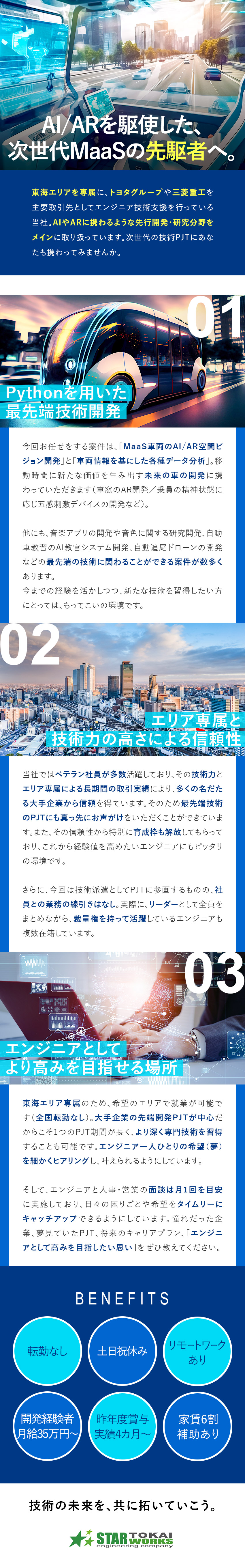 【愛知/ソフト設計】◆最大手メーカー勤務◆未来都市向け小型EV・空飛ぶクルマの先行開発/福利厚生◎