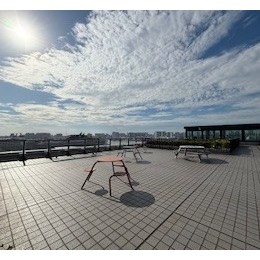 オフィスの屋上にはベンチやビーチベッドもあり、景色を眺めながらリゾート気分を味わえます!