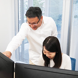 最初は、社長や先輩の補佐として経験を積み、徐々に顧客対応をお任せしていきます。