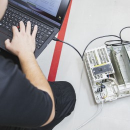 お客様先のオフィスに足を運び、パソコンや電話機、インターネットに接続するためのルーターなど、オフィスで使う機器(OA機器)の設置・配線やメンテナンス、アフターサポートを行う仕事です。