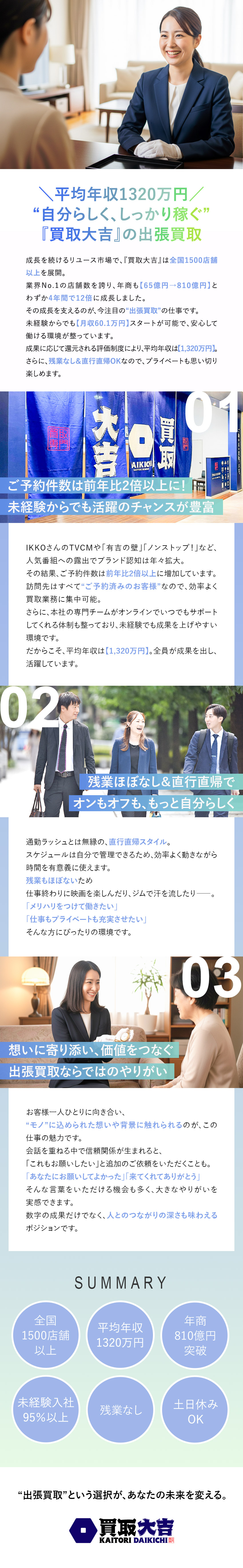 買取営業/安定の月収50万円以上/賞与年2回/残業10h以下