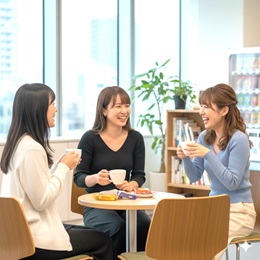 休憩中は、仕事の相談はもちろん、プライベートな話題でも気軽に話せる雰囲気です。