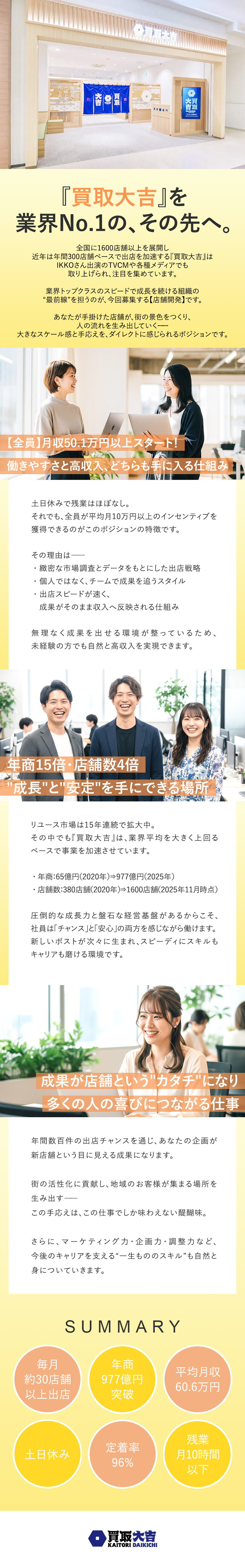 NEW【FC店舗開発】急成長で店舗拡大を続けるリユース企業/残業少・原則土日休/ベテラン層・即戦力歓迎