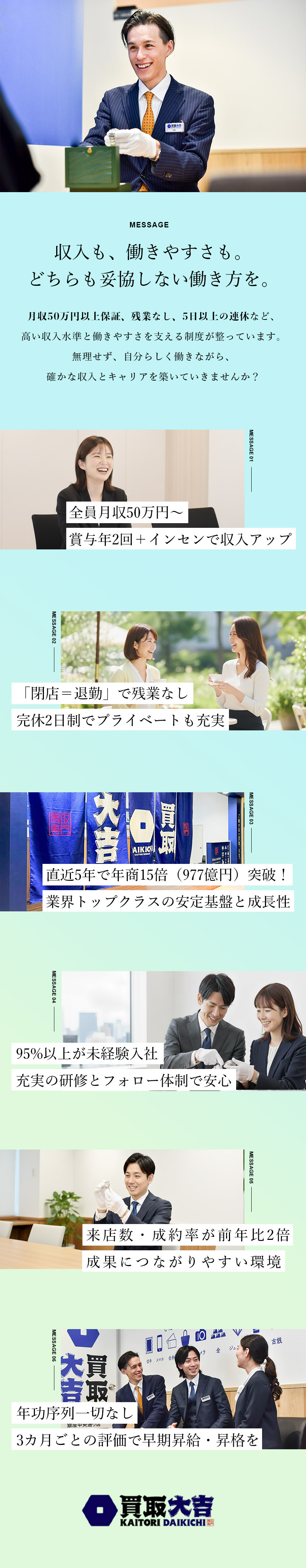 買取営業/安定の月収50万円以上/賞与年2回/残業10h以下