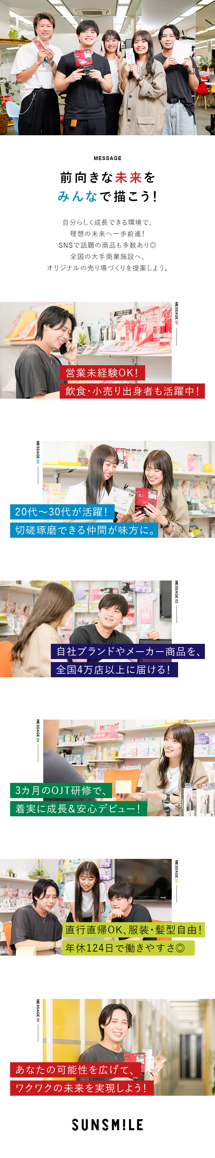 成長意欲の高い仲間とコスメや雑貨など共通の好きなものを分かち合いながら、情熱を持って活躍できる環境はあなたの成長に前向きな変化をもたらしてくれるはず。