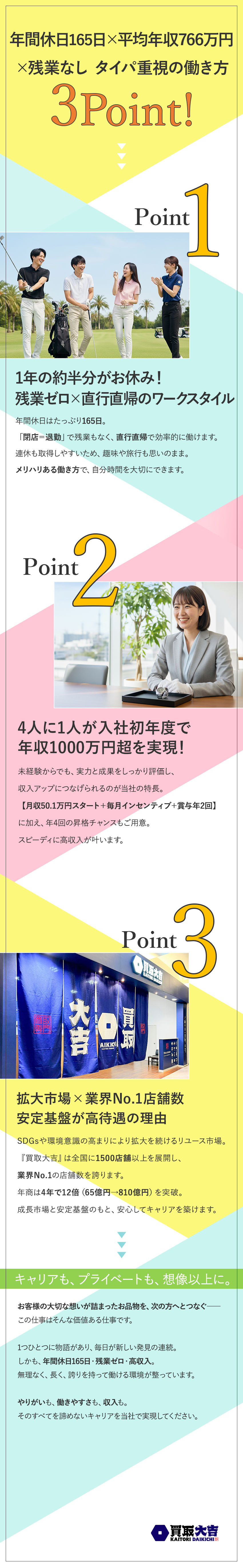 【営業マネージャー候補】『買取大吉』展開/平均年収1500万円超/市場拡大中のリユース企業