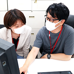 他部署のスタッフとの打ち合わせでは、自分の意見を伝えつつ原稿作成の打ち合わせや提案の戦略を立てます。