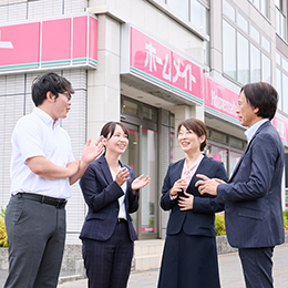 何もかもがはじめてで、ドキドキの営業デビューでしたが、すぐに不安はなくなりました。頼もしい先輩たちと、会社のバックアップのおかげでしかないので、感謝の気持ちでいっぱいです!