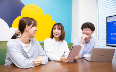 研修中から講師とフォロー担当が密に連携し、配属後も手厚いサポートを提供。一貫したフォロー体制が、じっくり安心して成長できる環境を生み出しているようです。また、これらの支援体制が取引先からの信頼を生み、さらなる受け入れた体制の強化につながる好循環も!