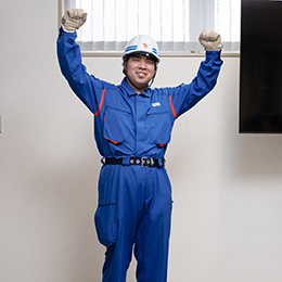 前職は不動産賃貸業で接客や営業を担当し、現在入社2年目。電気工事に関する知識はなく、未経験で入社しましたが、入社後の研修やOJTで日々学んでいます。年齢が近い社員も多く、仕事以外の事も話しやすいです。