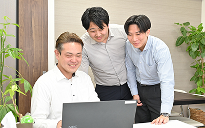 「仕事の厳しさより、仕事の楽しさを感じてほしい」と語る山下社長。自身の営業時代の儀愛経験から、納得のいく給与体系や休日制度を整備。月100万円以上の歩合を獲得する社員もいますが、「正直、会社だけ儲かっても意味がない。稼いで楽しく働いてもらう方が大事」と語る姿からも、社員への思いやりが伝わります。