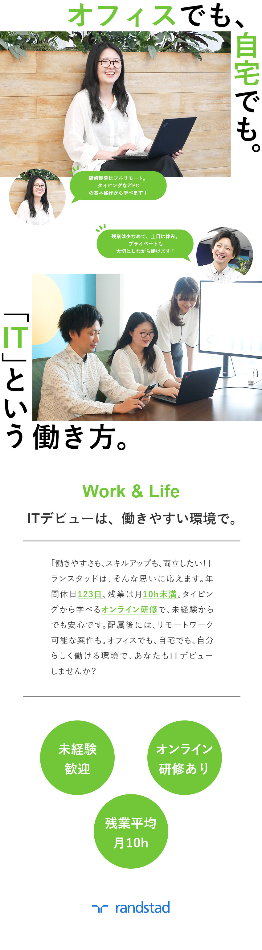 IT事務/土日祝休/在宅研修/未経験98%/残業平均月10h