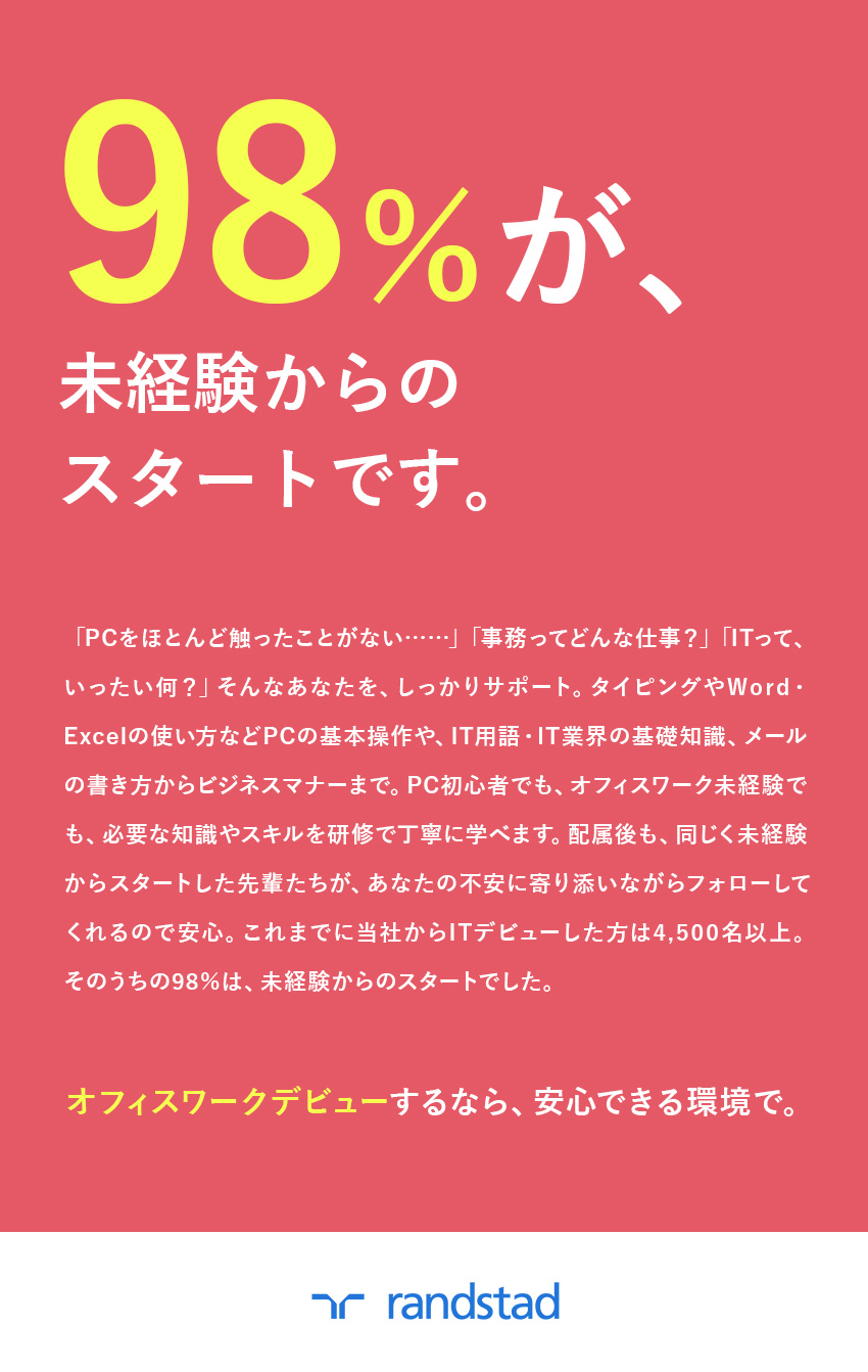 98%が未経験!充実のサポートでIT事務デビュー/リモート有