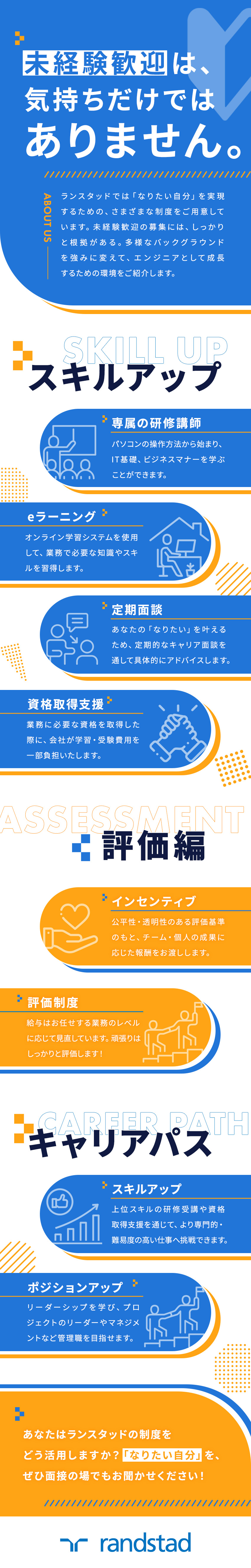 人材サービスを展開するランスタッドだからこそ、ITに拘らず豊富なキャリアの選択肢があります。今は具体的にやりたいことが決まっていなくても大丈夫!あなただけの未来を一緒に考えていきます!