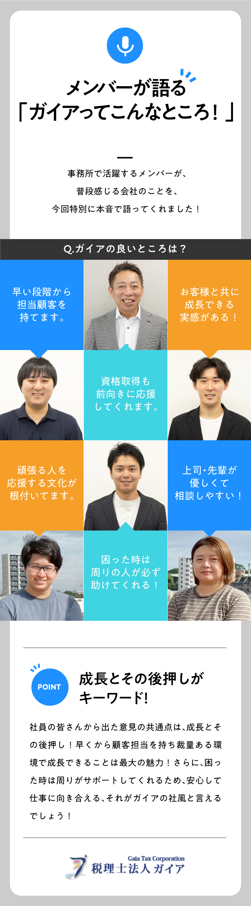 成長スピードが速いことで、毎日自分が一歩ずつ前進していることを実感できる環境です。頑張りは昇進や昇給など、目に見える形として反映されるため、日々モチベーション高く税務に関して学習を続けられるでしょう。