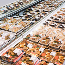 中四国・九州・関西地方でイズミグループが展開する「ゆめタウン」「ゆめマート」など200店舗以上のスーパーマーケットへ、お惣菜を供給する当社。