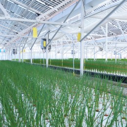最先端の営農型太陽光発電「ソーラーファーム」。野菜と電気を同時に作る新時代の農業生産システムです。