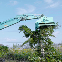 同社のヒット商品「クサカルゴン」は、どんな雑木や竹やぶも粉砕する強力なパワーがあります。