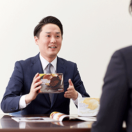 営業スタッフは、オフィスでの内勤が基本。取引先との情報交換のほか、市場や商品の調査・分析を行いながら予測を立て、計画通りの販売実績を目指すのが当社の営業スタイルです。