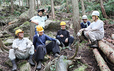 富山県、石川県、福井県、京都府の各府県において現在、山林1万ha(東京ドーム約2100個分)の保守管理を行い、水源や国際木材の生産をしている同社。