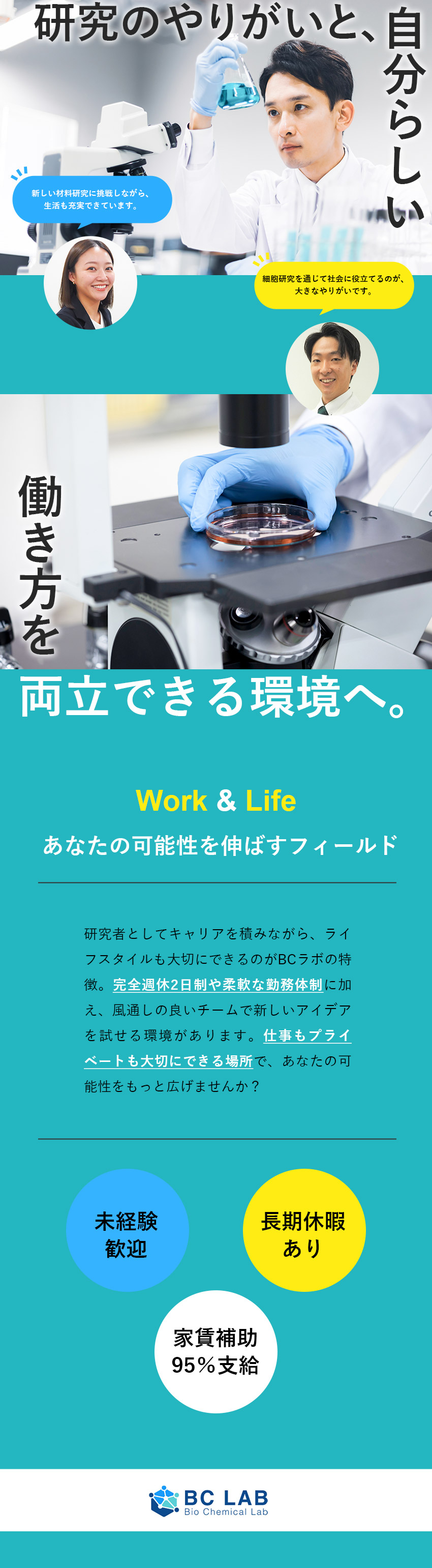 【理系卒/未経験歓迎】学生時代に学んだ化学・バイオ系の知識を活かし、研究職に就きたい方!