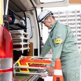 点検業務の際は、諸々道具などを準備してから現地に向かいます。バディやチームのメンバーが動きやすい環境を整えるためにも、事前に準備をしておくなど先を見越した行動が大切になります。