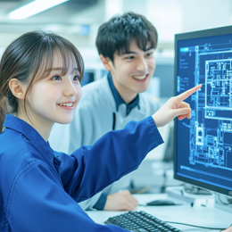 自動車に使用される樹脂部品の性能や安全性を、Abaqusなどのソフトウェアを駆使してコンピュータ上でシミュレーション・検証する樹脂流動解析を行います。樹脂解析経験者は即戦力としてお迎えしますが、まずはオペレーターからスタートし、少しずつ技術を身につけ、CAE解析エンジニアへ…でもOKです。