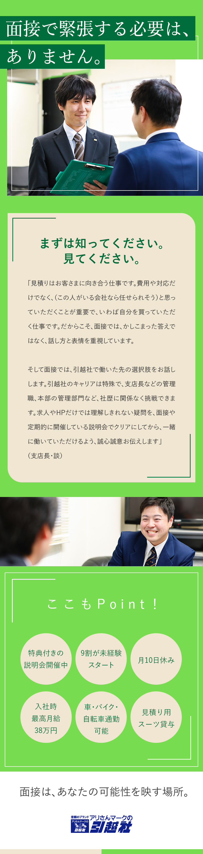 引越アドバイザー/月10日休/想定年収420万円超/未経験可