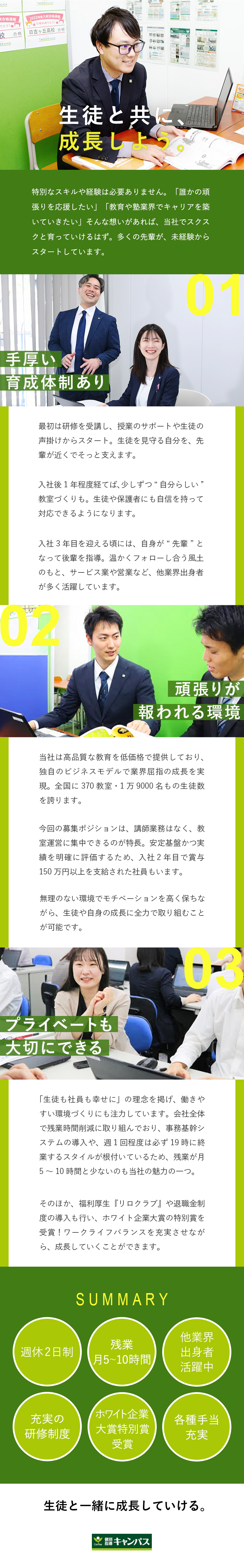 【千葉/25卒・第二新卒歓迎】教室コーディネーター※CMでおなじみ「個別指導キャンパス」運営◇残業少