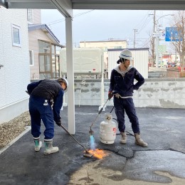 民間の駐車場の舗装や外構工事、冬場は道路の除排雪作業も行っています。地域のみなさまのお役に立てるよう、活動しています。