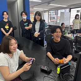 代表(写真右側)が参加する社内のゲーム大会も!参加者募集中です◎