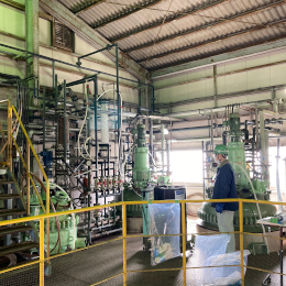 理科の実験室とは比べ物にならないほど、大きな機械を使って製造をします。化学好きならワクワクします!